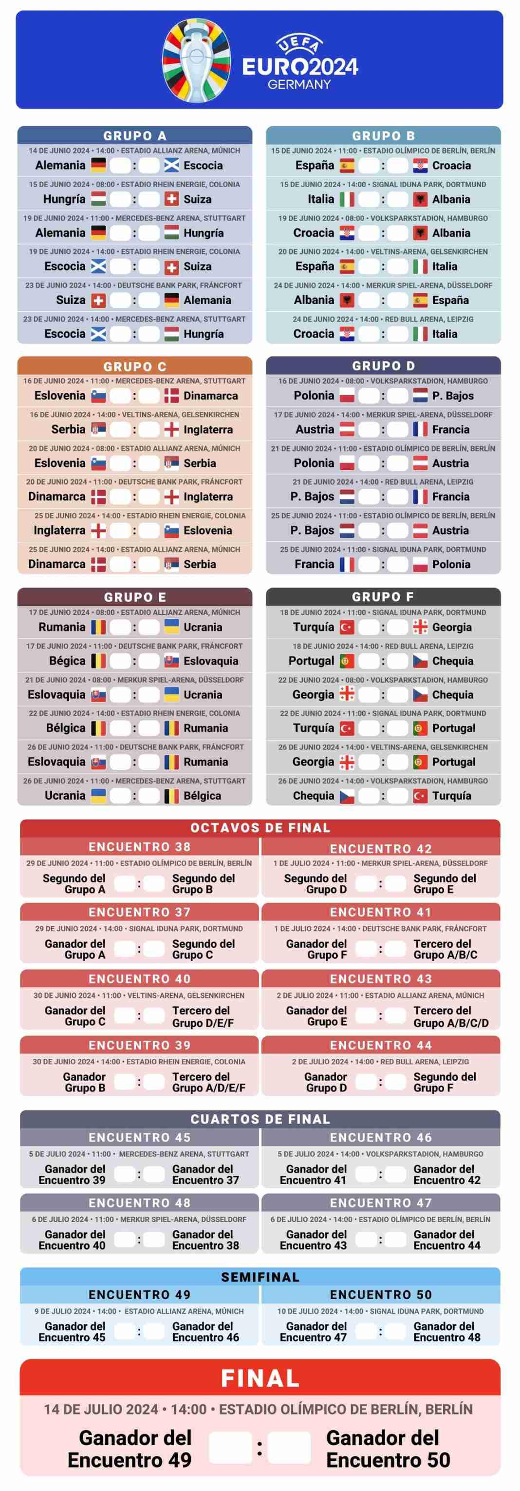 Calendario Eurocopa 2024 todos los partidos del campeonato Diario La , El comité ejecutivo de la uefa se reunió hoy en viena y aprobó el calendario de partidos de la fase final de la uefa euro 2024, que tendrá lugar en diez ciudades de alemania.